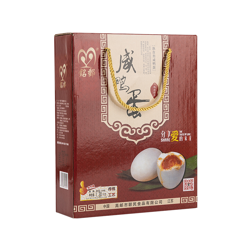 高郵市聯(lián)民食品公司成立于2012年,坐落在魚米之鄉(xiāng),一蛋雙黃,好事成雙的鴨蛋原產地高郵,專注鴨蛋行業(yè)很多年,目前致力于三家知名上市食品企業(yè)OEM代加工、和南京、常州、安徽、蘇州、優(yōu)質食品企業(yè)深度合作及自主品牌線下代理商和線上的業(yè)務模式,精心深度加工麻鴨咸鴨蛋,專業(yè)生產咸蛋黃,精心做蛋的其他多種產品,公司擁有資深的研發(fā)團隊,有系統(tǒng)的研究和質量控制中心,建設了有通風功能,高效殺菌的恒溫腌制車間,具有專業(yè)的大型蛋品生產設備,擁有8000平方米的生產車間,服務全國客戶超千萬枚的蛋制品,生產的“銘郵”牌系列蛋品選用當地優(yōu)質的高郵鴨蛋為原料,采用傳統(tǒng)秘制工藝及現代加工技術恒溫腌制而成。長年供應,品種齊全。具體規(guī)格:55克、60克、65克、70克、75克、80克的咸鴨蛋及松花蛋,70克、80克、90克、100克以上的雙黃蛋及各種規(guī)格的咸蛋黃。希望各界伙伴和企事業(yè)單位共同就高郵蛋,攜手共贏!..